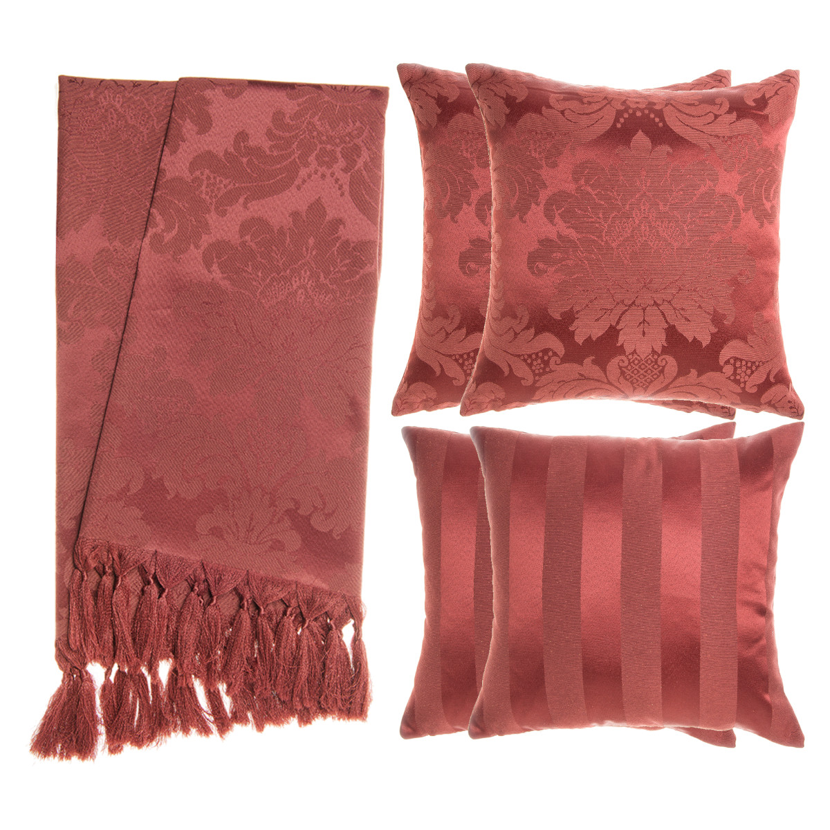 Kit Manta e Capas de Almofada em Tecido Jacquard Tradicional Vinho Marsala